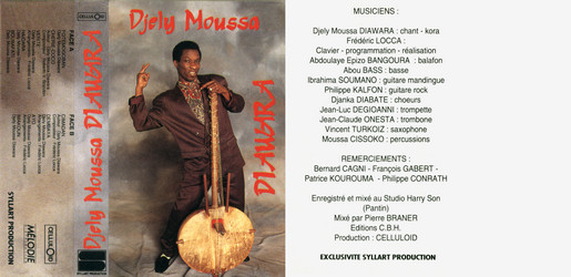 | Manding magic from Kora maestro Djely Moussa but this time with an overdose of bass from, funnily enough, 'Abou Bass' making it somewhat Disco orientated in style. However there is some lovely original style guitar and balafon from Ibrahima Soumano and Abdoulaye Bangoura backed up by percussionist Moussa Cissoko. Well known singer Djanka Diabate provides the perfect accompaniment to Djely's stunning vocals and Kora playing. Recorded at Studio Harry Son in Paris The album was released on CD and TC by Celluloid in 1992 as CIMADAN. This version released same year by Syllart under licence to EMI Pathe Marconi C.I. A half brother on his mother's side to Mory Kante. Definitely set to become a 'CLASSIC'. | 1. FOTEMOGOBAN 2. CHERIE COCO 3. VERITE 4. HAIDARA 5. BOUBAFATI 6. CIMADAN 7. DEMBAYA 8. AYO 9. IMAKOUN | ||||