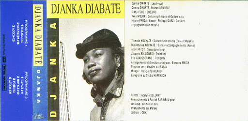 | Arranged By – Boncana Maïga, Patrick Papineau (tracks: A1) Art Direction – Boncana Maïga Backing Vocals – Assitan Dembele, Diaby Fode*, Oumou Diabate* Bass – Hilaire Panda* Drum Programming – Philippe Guez Horns – Alain Hatot, Eric Giausserand, Jacques Bolognesi Keyboards – Philippe Guez Kora – Tiemoko Kouyate (tracks: A1, B3) Lead Guitar – Tiemoko Kouyate (tracks: A1, B3) Lead Vocals – Djanka Diabate Mixed By – Francis Perreard Photography By – Jocelyne Bellamy Recorded By – Maurice Valensin Rhythm Guitar – Djelimoussa Kouyaté* (tracks: A3, B4) Rhythm Guitar, Lead Guitar – Yves N'Djok* | 1. MALAKA 2. MOUNKERA 3. ACOCO 4. LA PAIX 5. MOYALE 6. FOTE 7. ACOCO (Instrumental) | ||||